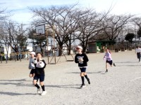 2組は、カタカナの練習。「指えんぴつ」で空に文字を書いているところ