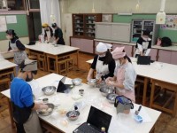 3.4校時の収穫祭に向けて、生地作りをしていました。寒かったので、イースト菌を先...