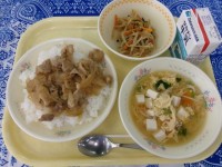 豚肉のしょうが焼き丼、わさび和え、かきたま汁、牛乳しょうがは、独特の香りと辛さが...