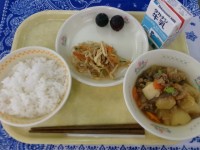 ご飯、魚のねぎみそ焼き、筑前煮、りんご、牛乳筑前煮は別の名前でも呼ばれています。...
