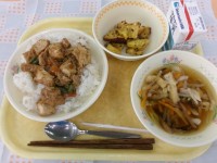 鶏丼、たくあん和え、水ようかん、牛乳今日は、初めて手作りした水ようかんをお届けし...