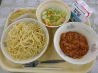 スパゲッティミートソース、フレンチサラダ、スイートポテト、牛乳10月27日から1...