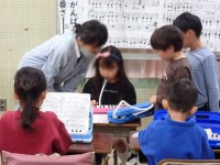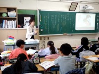 一人一人、新出漢字の先生を担当しているようです。担当になった漢字をワークシートにまとめて、順番に前に出て、ポイントを解説しながらみんなに教えていました。