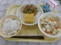 ご飯、切干大根いり卵焼き、おひたし、きのこのみそ汁、牛乳11月24日は和食の日でした。和食の基本である一汁三菜は多様な食材の組み合わせにより、栄養素をバランスよく摂取することができます。また、「だし」...