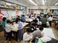 図工室で授業をしていました。1年生が図工室を使うのは珍しいんですよ、たまたま空いていてよかったね!「すいすいぐるーり」というテーマで絵を描いていました。