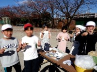 ピザの後は、2年生が持ってきてくれた焼き芋タイム!こちらも、6年生が切り分けて1.2年生に配ってくれました。こちらもあんなに窯に詰め込んでどうなるかと思っていましたが、とってもホクホク!2年生が濡れた...