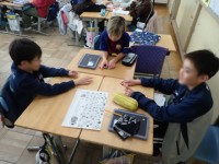 電磁石についての自由進度学習です。実験を自分の納得のいくまで繰り返せるのもよし。発展学習で釣りをしたり、モーターづくりに勤しんだり、一人一人が生き生き学んでいます。