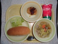 飲むヨーグルト(アシドミルク) コッペパン ビーンズコロッケ ボイルキャベツ パ...