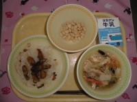 牛乳 いわしごはん きなこ大豆 にゅうめん