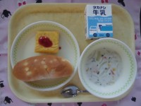 牛乳 パインパン スパニッシュオムレツ マカロニのクリーム煮