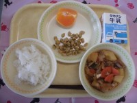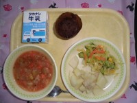 牛乳 ごはん 青のりビーンズ 韓国風肉じゃが 甘平