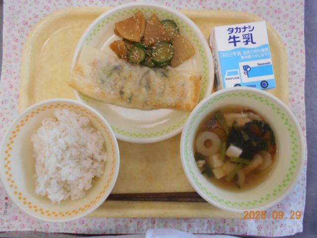 牛乳 ごはん 焼き春巻き 華風漬け よしの汁