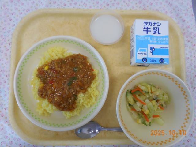 牛乳 ターメリックライス ベジ★キーマカレー コールスローサラダ カルピスゼリー