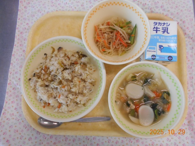 牛乳 高菜とじゃこのチャーハン バンサンスー トックスープ