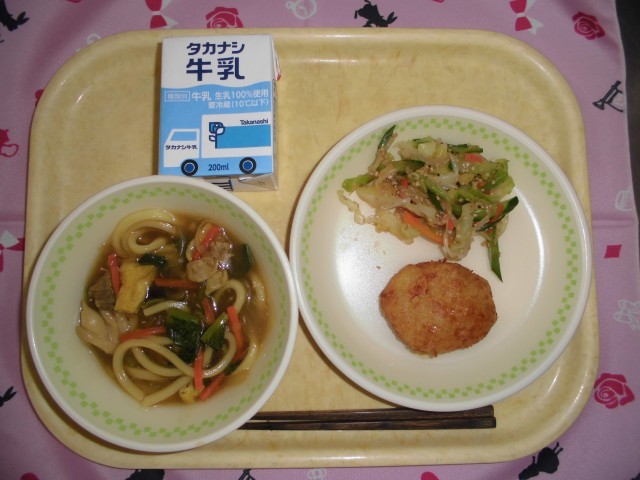 牛乳 カレーうどん ごまあえ 揚げいももち