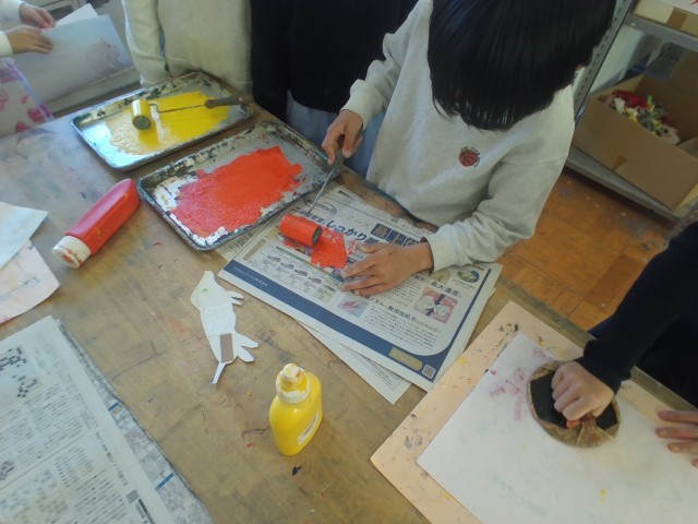 3年生は図工の授業で、初めての紙版画「うつしてふえるよでこぼこさん」を進めています。