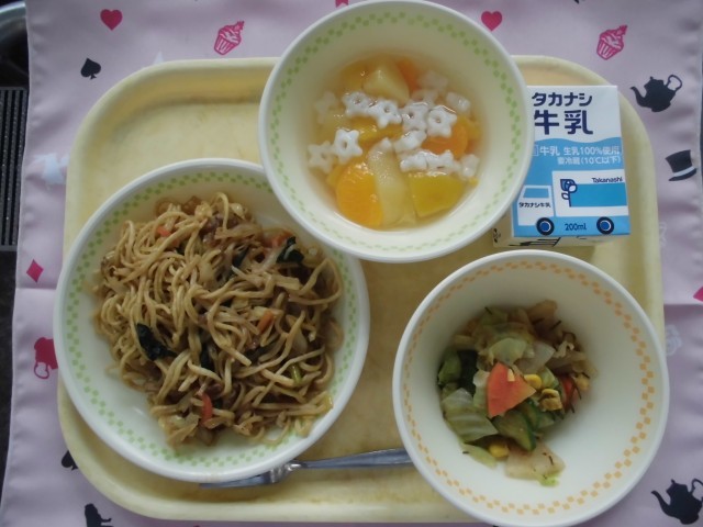 牛乳 いか入りやきそば 元気サラダ もちもちフルーツポンチ