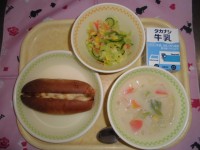 牛乳 あなごごはん きゅうりのスタミナ漬け 具だくさんみそ汁