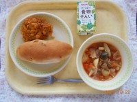 牛乳 ソースやきそば さつ豆サラダ フルーツポンチ