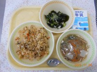 牛乳 玄米入りごはん いかの香味焼き きんぴら 赤だしのみそ汁