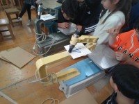 4年生は今年度最後の図工の授業で電動糸のこぎりを使いました。初めての電のこです。...