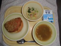 牛乳 カレー焼きパン ツナサラダ オニオンスープ