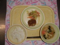 牛乳 ごはん 豆腐ハンバーグ おろしソース 和風サラダ わかめのみそ汁