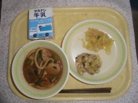 牛乳 みそ煮込みうどん ゆず和え 鬼まんじゅう