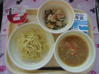 牛乳 いか入りやきそば 元気サラダ もちもちフルーツポンチ