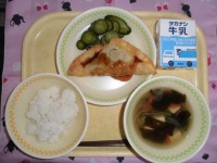 牛乳 ごはん ジャンボ餃子甘酢あん きゅうりの華風づけ わかめスープ