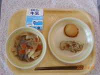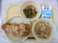 牛乳 きなこあげパン 海藻サラダ 肉だんごのスープ