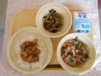 牛乳 焼き鳥丼 わかめサラダ あんかけ汁