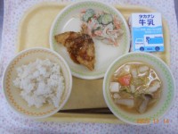 牛乳 ごはん つくねの甘酢あんかけ 和風サラダ むらくもスープ