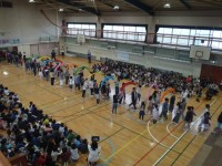 体育館にて「1年生を迎える会」を行いました。1年生は6年生に優しく手を引かれ、上...