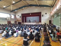 お世話になった先生方とお別れをする離任式を行いました。式では、代表児童が先生方と...