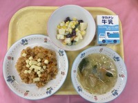 ~今日の献立~牛乳ごはん家常豆腐バンサンスーりんご