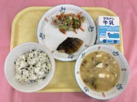 ~今日の献立~牛乳ごはん鮭の塩麴焼き根菜のきんぴら沢煮椀