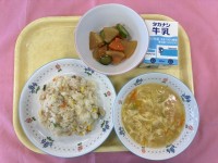 ~今日の献立~牛乳チキンピラフかふうづけ中華風コーンスープ