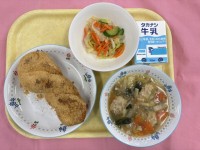 ~今日の献立~牛乳ごはんジャンボぎょうざの甘酢餡あんかふうづけ白菜のスープ