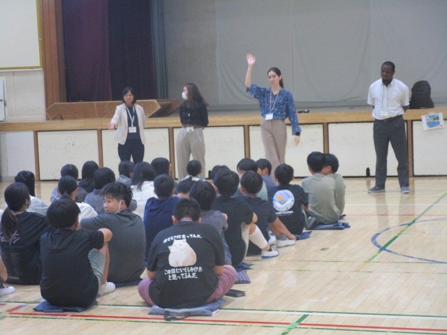 えいごのまちだの「外国語に触れる機会の創出」事業の一環として、毎年高学年で実施されている「イングリッシュキャラバン」の授業が行われました。様々な出身地のALTの先生たちが、子供たちにいろいろな課題で迫ります。ネイティブとの積極的なやりとりを通して、さらに英語に親しむよい機会になりました。
