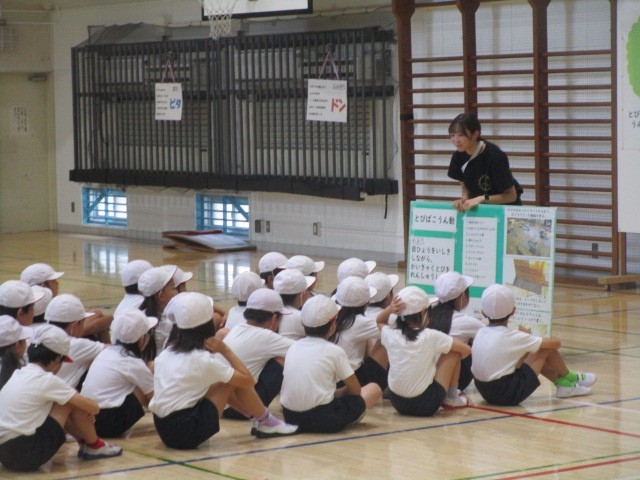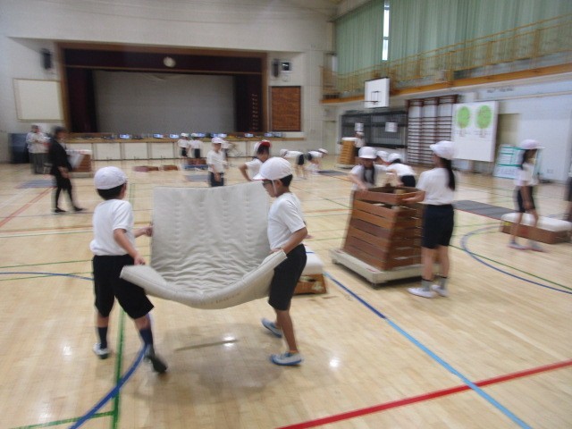 今日の5時間目は、3年1組だけ残って、校内研究の授業が行われました。体育館での体育の授業で、「跳び箱運動」の課題です。たくさんの先生が観ている中、子供たちは先生から今日の流れを確認し、準備運動を行って、跳び箱の準備をみんなで協力して行いました。