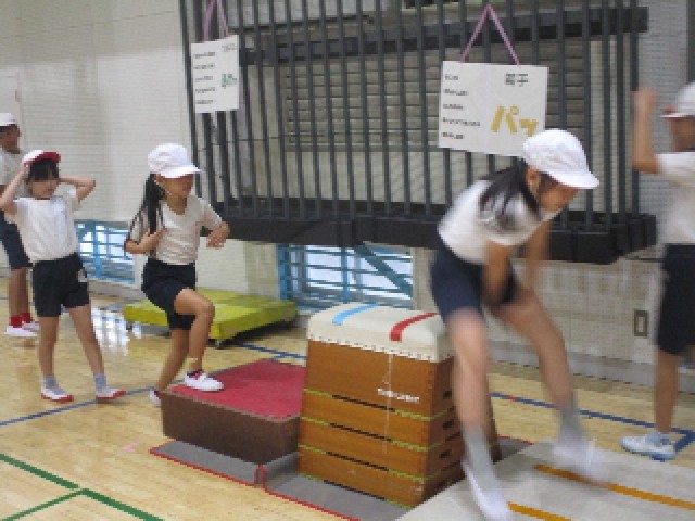 自分の課題が分かった後は、グングンタイムで、「ふみきり・着手・つきはなし・着地」のそれぞれの場に分かれて練習をしました。ポイントを押さえて練習した成果が、その後の技に出ていて、子供たちは達成感を感じることができたようです。振り返りの中で、しっかり発表することができました。3年1組の皆さん、西村先生、すてきな授業、ありがとうございました。