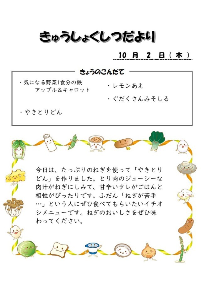 2025年10月2日の給食