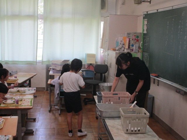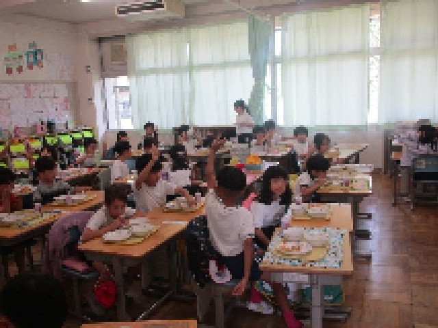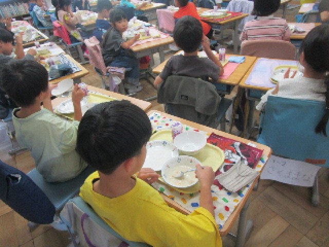 午前中の授業を終え、楽しみな給食の時間です。1年生の教室では、大好きなチキンライスを完食し、おかわりをしている様子が見られました。もりもり食べて、午後もしっかり勉強しましょうね。