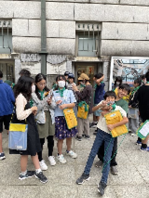 広い館内をグループで相談し合って回ります。