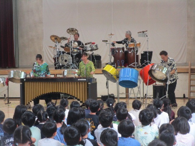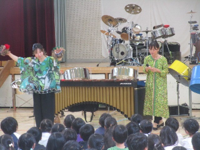 東京都教育庁が主催する「笑顔と学びの体験活動プロジェクト」が、今年も体育館で全学年に向けて開催されました。今年度は、東京パノラマパーカッションの皆さんによる、世界各国の打楽器による演奏と体験学習です。前半は、1~3年生の子供たちが参加しました。(1年生はインフルエンザによる欠席者が多かったため、ミートによる参加にしました。)