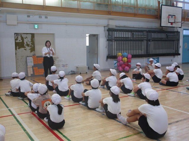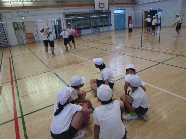 3組の2時間目の体育の授業は、体育館でのキャッチバレーボールの学習です。今日の学習のめあて、「協力・ポジティブな声かけ」を意識して、ゲームに取り組みました。チームで作戦を考えて、ゲームに臨みます。勝ち負けにこだわらず、いいプレーには「ナイスプレー!」、失敗しても「ドンマイ」の声をかけ合い、みんな楽しくゲームに参加できていました。