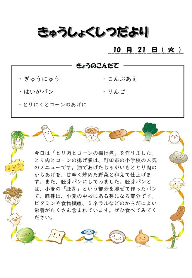 2025年10月21日の給食