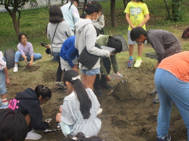 1組の1・2時間目の理科は、「流れる水と土地」の学習で、川の上流と下流の様子を、校庭の砂場で再現して観察しました。流れの違いについて、予想を立てた子供たちは、結果に驚きながらも、どうして違いが出るかについて、友達同士でしっかり振り返ることができていました。