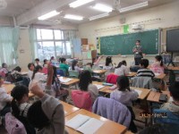 3・4時間目の3組の図工の授業は、『ぎゅっとしたい!わたしの「友だち」』の課題で、大きなクラフト紙の袋をぐしゃぐしゃにして、その中に新聞紙を切って詰めて、思わず抱きしめたくなるような自分だけのキャラクター(=「友だち」)を作ります。子供たちは、色や形、いろいろな材料の使い方を工夫し、紙を丸めたり、くしゃくしゃにしたりする感触を楽しみながら、立体的な作品を生み出します。どんな「友だち」ができるか、とても楽しみな活動になっていました。